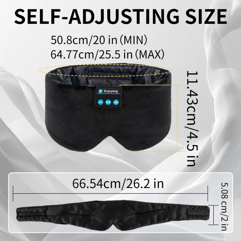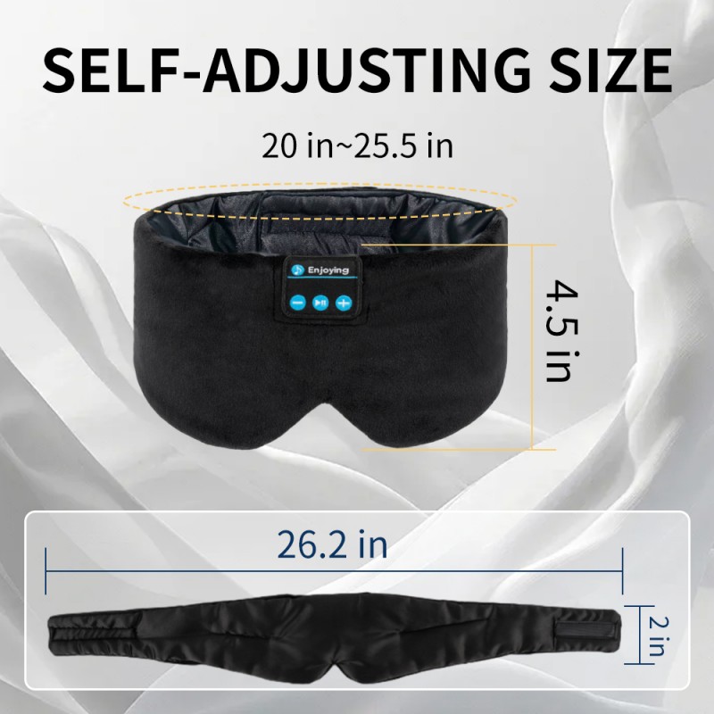 Questa maschera per gli occhi per dormire bluetooth in seta per cuffie per dormire maschera nera è progettata ergonomicamente per adattarsi alle curve del tuo viso. La fascia magica regolabile si adatta alla maggior parte delle circonferenze della testa. Questo morbido auricolare con maschera per il sonno non è solo un prodotto ma anche un accessorio per la vita.
